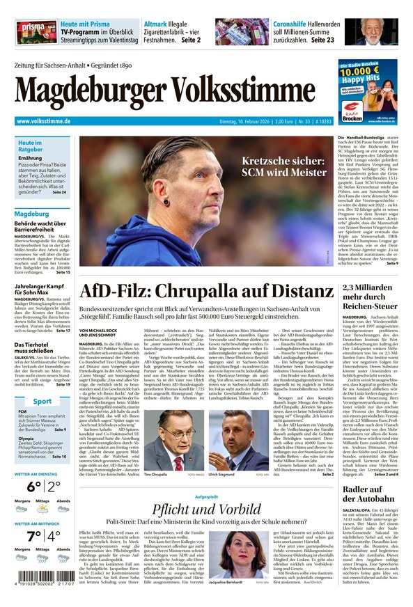 Heimatverbunden, kritisch und meinungsstark berichtet die Volksstimme täglich über das Geschehen in Magdeburg und Umgebung. Das ePaper erscheint montags bis freitags und überzeugt durch einen abwechslungsreichen Informationsmix. Neben einem Regionalteil finden Leserinnen und Leser der Volksstimme aktuelle Nachrichten aus der Politik, Wirtschaft, Kultur, Sport und Medien. Weiterlesen...