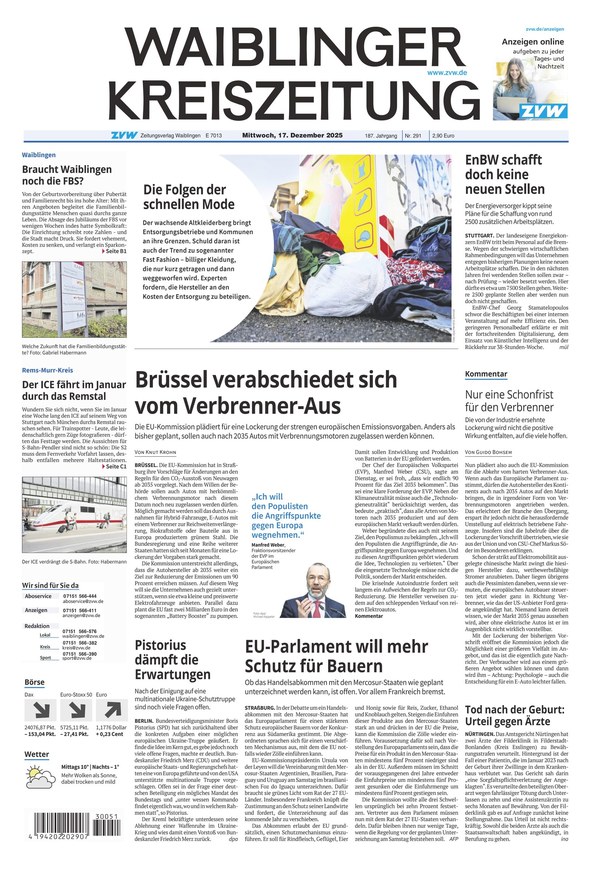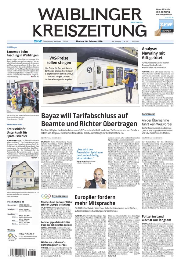 Die Waiblinger Kreiszeitung wird durch den Zeitungsverlag Waiblingen (ZVW) herausgegeben, der im Rems-Murr-Kreis und nahe der Stadt Stuttgart liegt. Neben der Waiblinger Kreiszeitung bringt er drei weitere Lokalzeitungen heraus, darunter fallen die Schorndorfer Nachrichten, die Winnender Zeitung und die Welzheimer Zeitung. Die vier Redaktionen sind jeweils für ihren eigenen Lokalteil verantwortlich, haben darüber hinaus aber noch einen gemeinsamen Kreisteil. Als Mantelpartner fungieren außerdem die Stuttgarter Nachrichten, von denen die Waiblinger Kreiszeitung und die restlichen Lokalzeitungen zusätzliche überregionale Inhalte erhalten. Sie möchten stets aktuelle Nachrichten aus Waiblingen und Umgebung erhalten? Dann nutzen Sie den iKiosk, in dem Sie die Waiblinger Kreiszeitung sowohl als ePaper als auch als PDF lesen und herunterladen können.