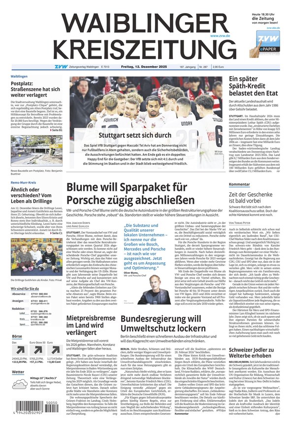 Im Rems-Murr-Kreis ist die Waiblinger Kreiszeitung eine der wohl wichtigsten Informationsquellen und berichtet in täglichen Artikeln über die Region und lokale Geschehnisse. Weiterlesen...