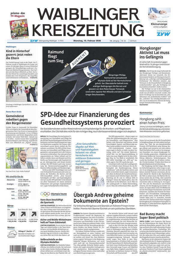 Im Rems-Murr-Kreis ist die Waiblinger Kreiszeitung eine der wohl wichtigsten Informationsquellen und berichtet in täglichen Artikeln über die Region und lokale Geschehnisse. Weiterlesen...