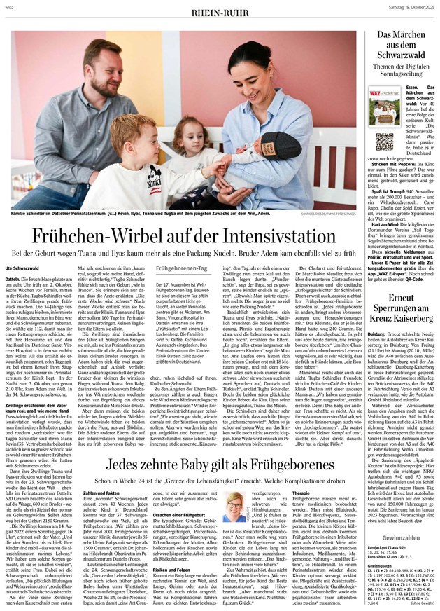 Mit Ausgaben im und rund um das Ruhrgebiet ist die Westdeutsche Allgemeine die größte regionale Tageszeitung Deutschlands. Herausgebender Verlag ist die Funke Medien NRW GmbH mit Sitz in Essen. Die WAZ, wie die Westdeutsche Allgemeine Zeitung fast überall genannt wird, erscheint täglich von Montag bis Samstag - gedruckt und als ePaper.