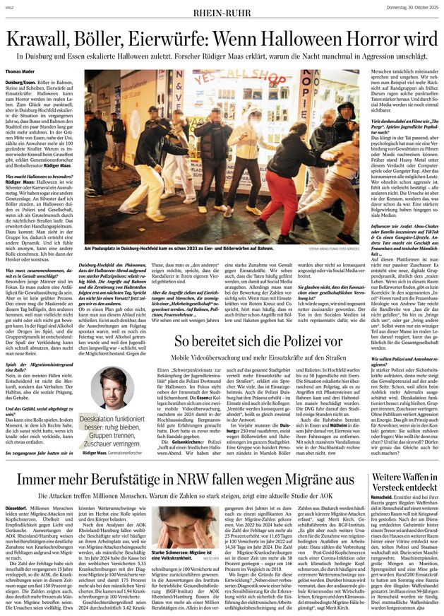 Die WAZ ist vor Ort präsent und punktet entsprechend durch lokale Kompetenz. Die Inhalte für die bereits erwähnten Ausgaben der WAZ werden in mehr als 30 Lokalredaktionen konzipiert und erstellt. Unabhängige Berichterstattung und sorgfältige Recherche sorgen dafür, dass Sie sich auf die WAZ als zuverlässige und vertrauenswürdige Informationsquelle verlassen können. Die lokalen Redaktionen befinden sich allesamt in Nordrhein-Westfalen. Berichtet wird tagesaktuell aus zahlreichen Ressorts. Ein deutlicher Schwerpunkt liegt auf der regionalen Berichterstattung, die WAZ verfügt über einen umfassenden Sport- und Lokalteil. Unter anderem gibt es in der WAZ folgende Rubriken: