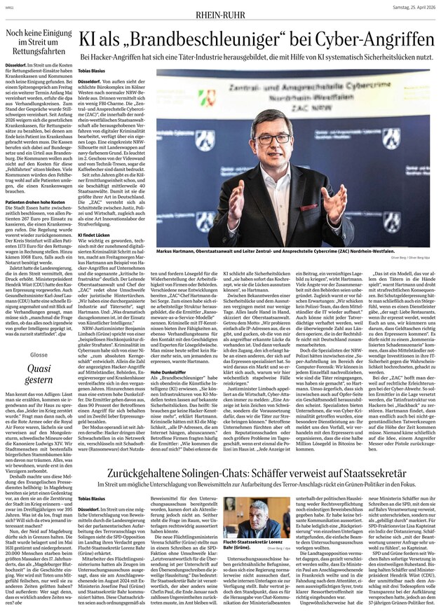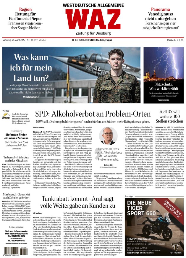 Die Westdeutsche Allgemeine Zeitung (WAZ) liefert brandaktuelle Nachrichten aus den Bereichen Politik, Wirtschaft, Kultur und Sport. Im ePaper finden Sie zudem regionale News aus Nordrhein-Westfalen. Weiterlesen...