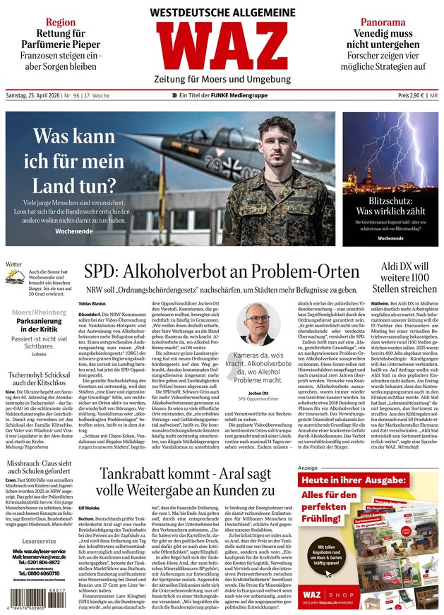 Die Westdeutsche Allgemeine Zeitung (WAZ) liefert brandaktuelle Nachrichten aus den Bereichen Politik, Wirtschaft, Kultur und Sport. Im ePaper finden Sie zudem regionale News aus Nordrhein-Westfalen. Weiterlesen...