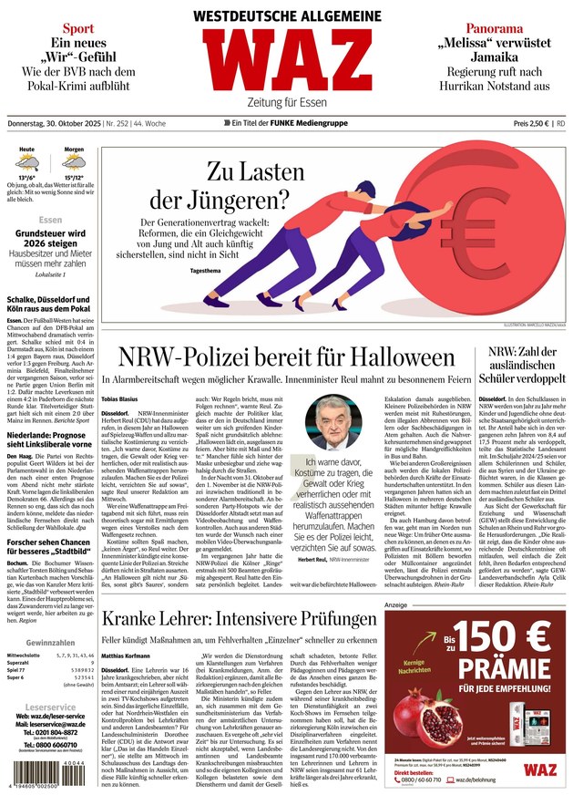 Die Westdeutsche Allgemeine Zeitung (WAZ) liefert brandaktuelle Nachrichten aus den Bereichen Politik, Wirtschaft, Kultur und Sport. Im ePaper finden Sie zudem regionale News aus Nordrhein-Westfalen. Weiterlesen...