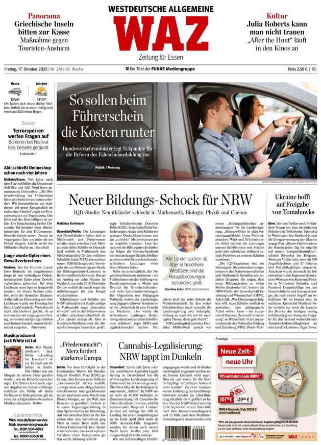 Die Westdeutsche Allgemeine Zeitung (WAZ) liefert brandaktuelle Nachrichten aus den Bereichen Politik, Wirtschaft, Kultur und Sport. Im ePaper finden Sie zudem regionale News aus Nordrhein-Westfalen. Weiterlesen...