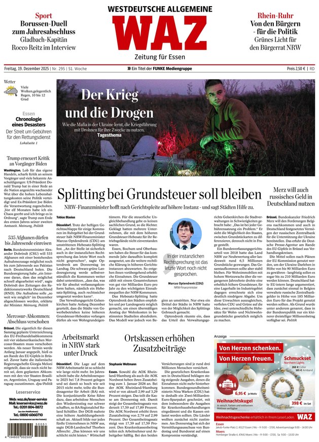 Die Westdeutsche Allgemeine Zeitung (WAZ) liefert brandaktuelle Nachrichten aus den Bereichen Politik, Wirtschaft, Kultur und Sport. Im ePaper finden Sie zudem regionale News aus Nordrhein-Westfalen. Weiterlesen...