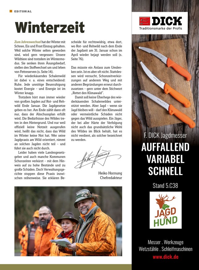 Wild und Hund ist die größte deutsche Special Interest Zeitschrift zum Thema Jagd. "Das Jagdmagazin seit 1894" erscheint zweimal monatlich und kann als ePaper bequem am Smartphone, Tablet oder Computer gelesen werden.
