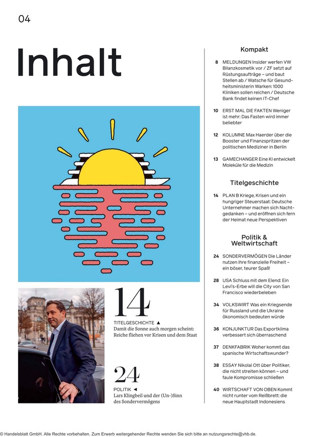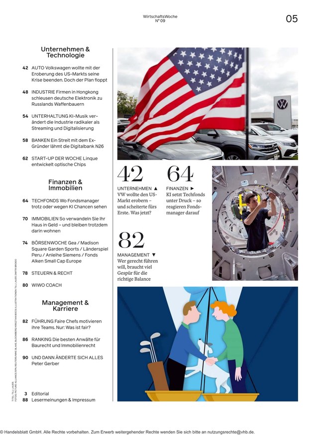 In der wöchentlich erscheinenden Zeitschrift Wirtschaftswoche lesen Sie Artikel und Diskussionen über aktuelle Themen aus Wirtschaft und Politik. Das ePaper informiert über alle relevanten News. Weiterlesen...