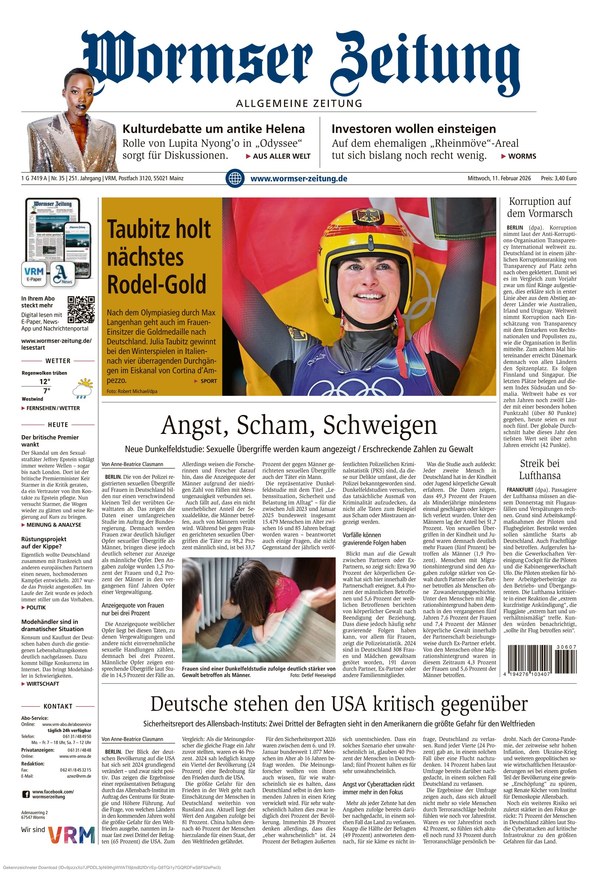 Die Wormser Zeitung ist Ihre traditionsreiche Informationsquelle, die mit umfassender Berichterstattung aus Worms und Rheinhessen alle Facetten von aktuellen lokalen Nachrichten über politische Entwicklungen und Wirtschaftsthemen bis hin zu Kultur, Sport und gesellschaftlichen Ereignissen abdeckt.