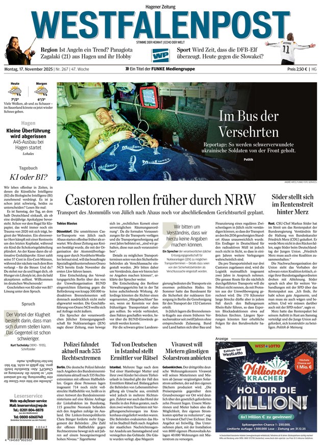 Die Tageszeitung Westfalenpost liefert aktuelle News aus der Region und der Welt.