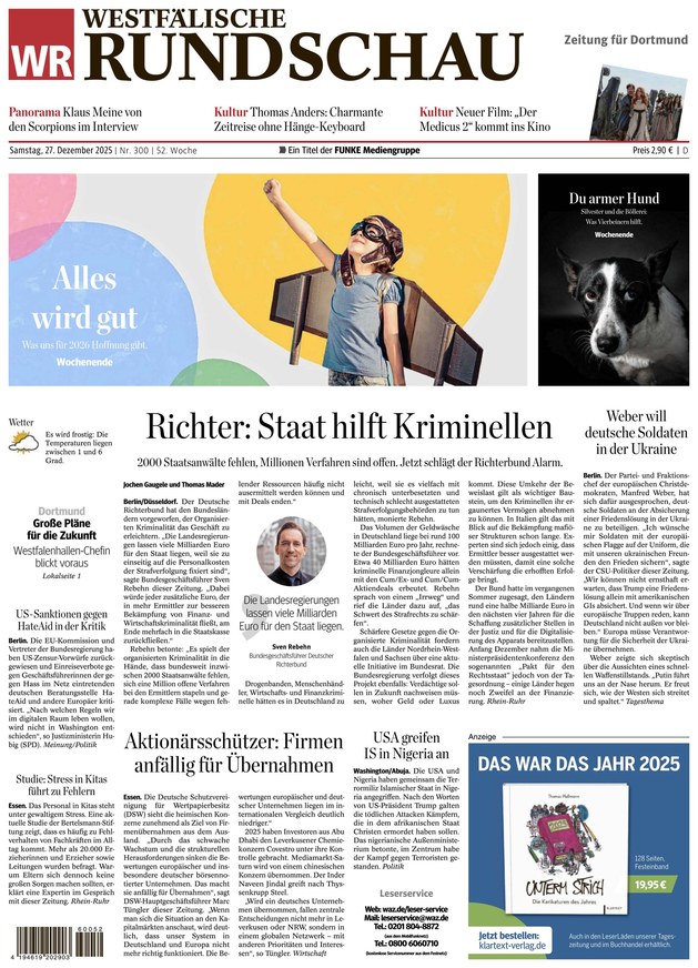 Das ePaper der Westfälischen Rundschau erscheint täglich von Montag bis Samstag. Die Tageszeitung berichtet nicht nur über alles, was rund um Dortmund wichtig ist, sondern legt neben der umfangreichen Lokalberichterstattung einen weiteren Schwerpunkt auf alle Nachrichtenthemen, die bundes- und weltweit interessieren. Das WR-ePaper kann als Einzelausgabe oder im Abonnement gelesen werden.